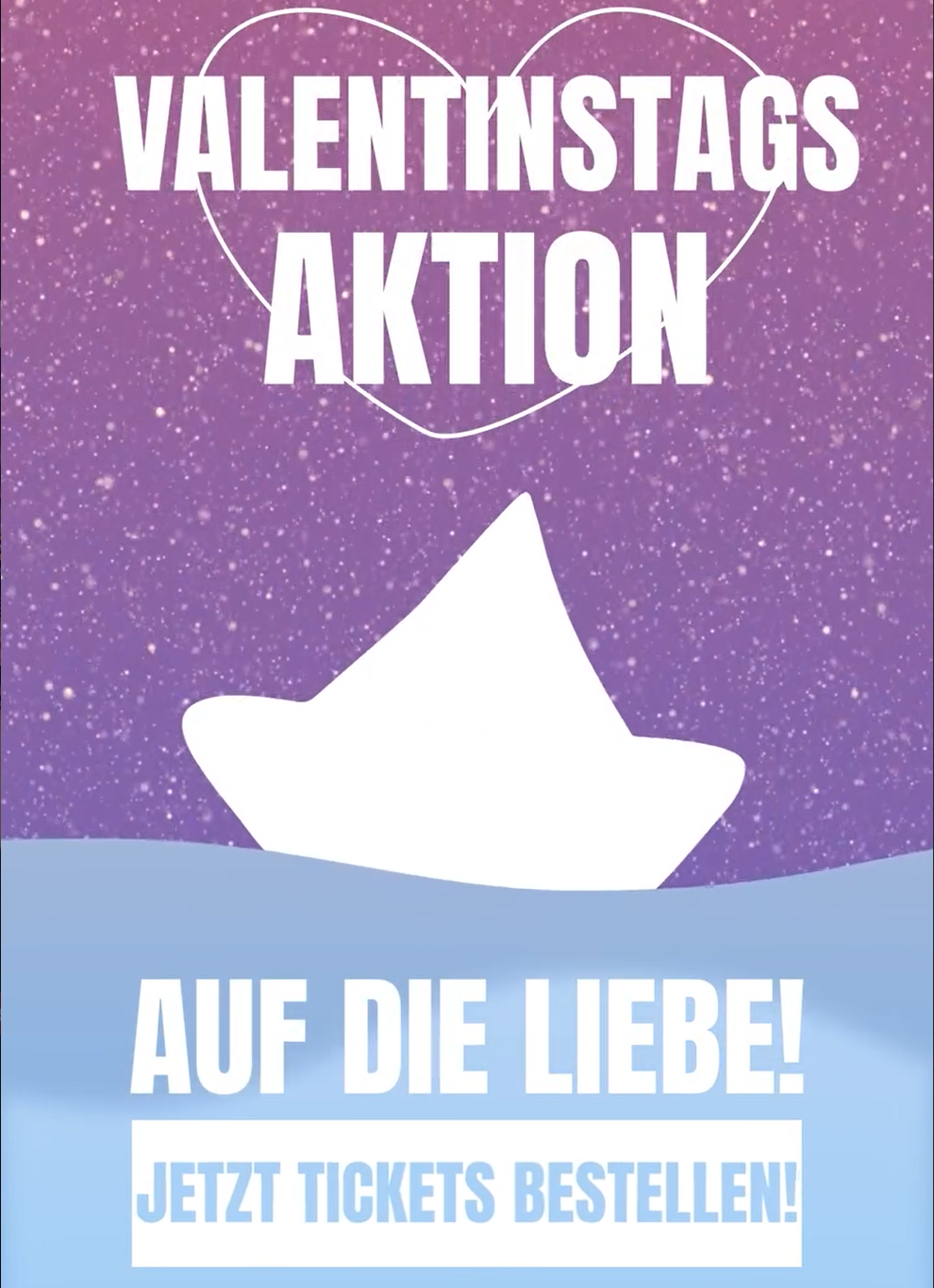 Verbringen Sie Valentinstag als Pärchen auf dem Theaterschiff und stoßen Sie mit uns an: Sekt für beide – aufs Haus am 14. Februar!