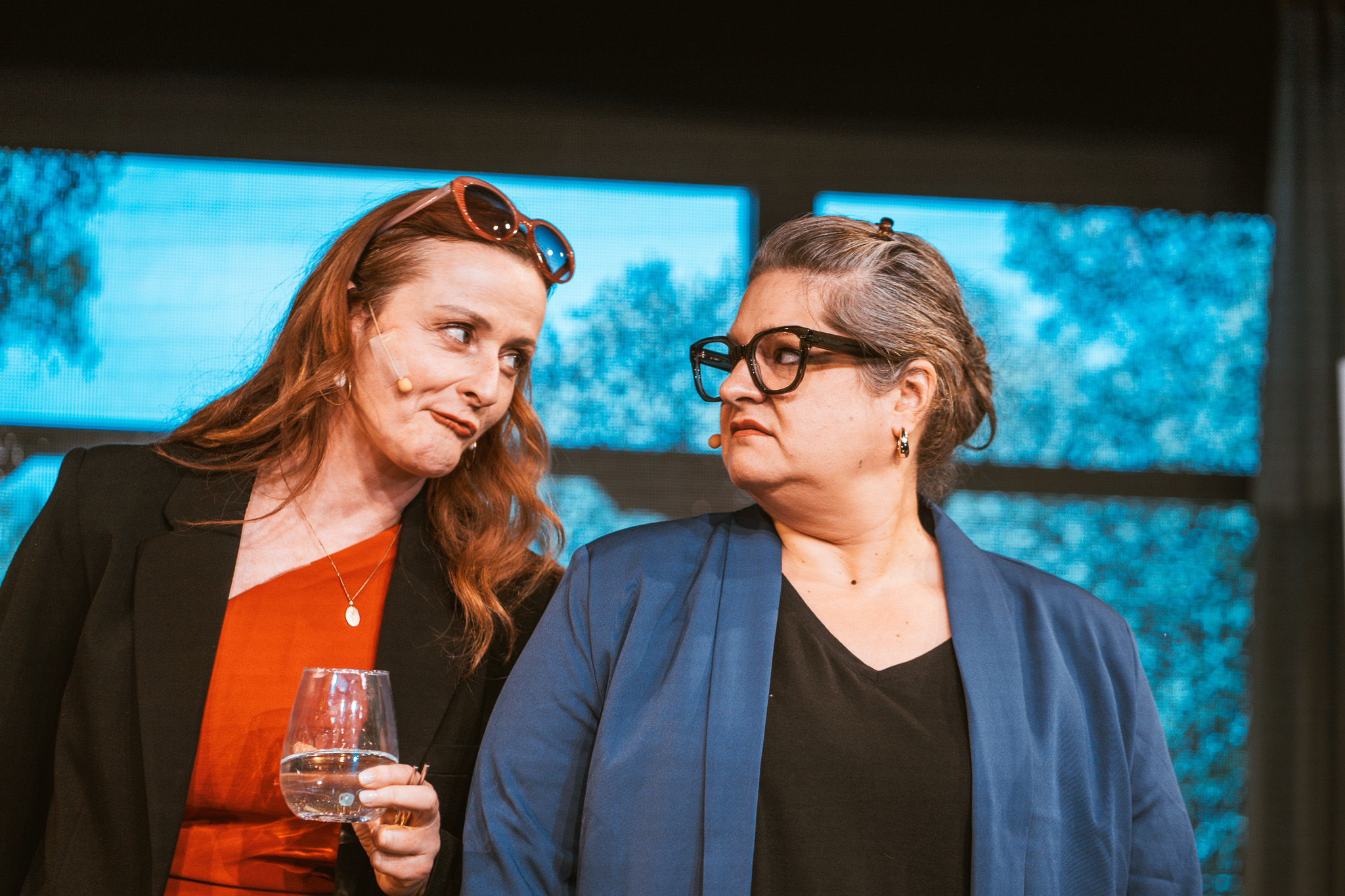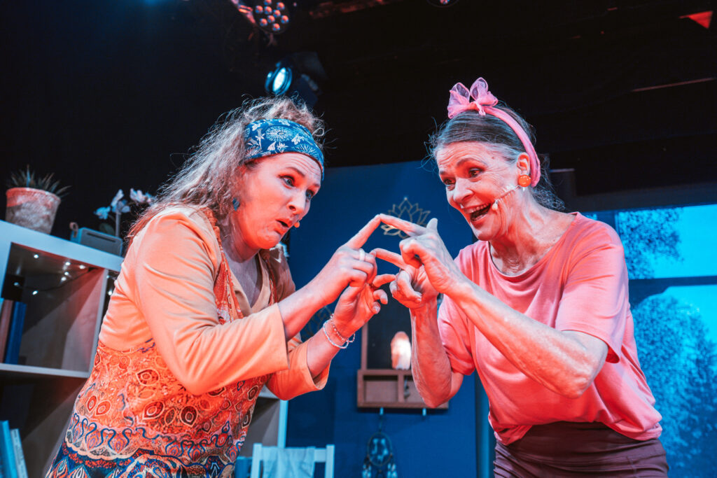 Da ist Mona (Tabea Scholz/Arlette Stanschus), die überforderte Glückscoachin mit einem Bauchladen voller esoterischer Ideen – und einem großen Herzen.