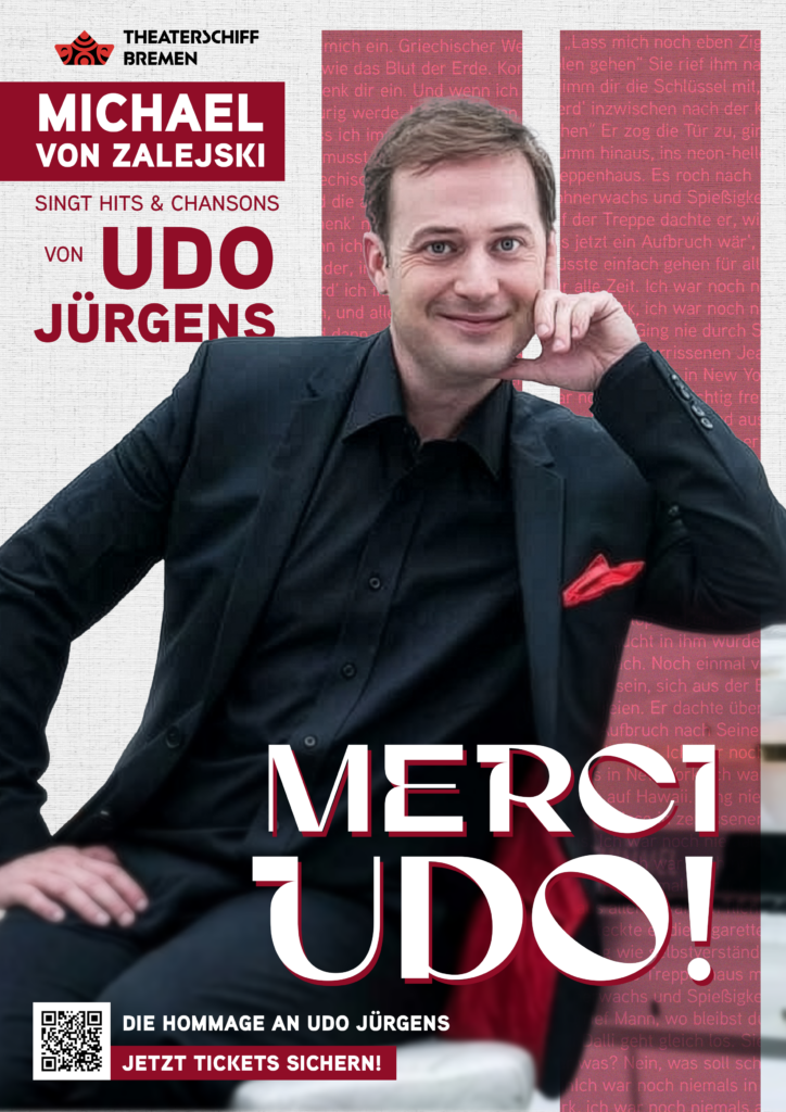Seit 2013 präsentiert der stimmgewaltige Künstler aus Hannover Perlen aus dem Werk von Udo Jürgens – alleine, nur am Klavier und ohne Playback oder Einspielungen. Dabei kommt er seinem musikalischen Vorbild erstaunlich nahe. Insbesondere die Lieder, „die im Schatten stehen“ (Udo Jürgens), erzeugen in Kombination mit den allgegenwärtigen Hits eine ganz besondere Mischung aus Chanson-Abend und Schlagerkonzert.